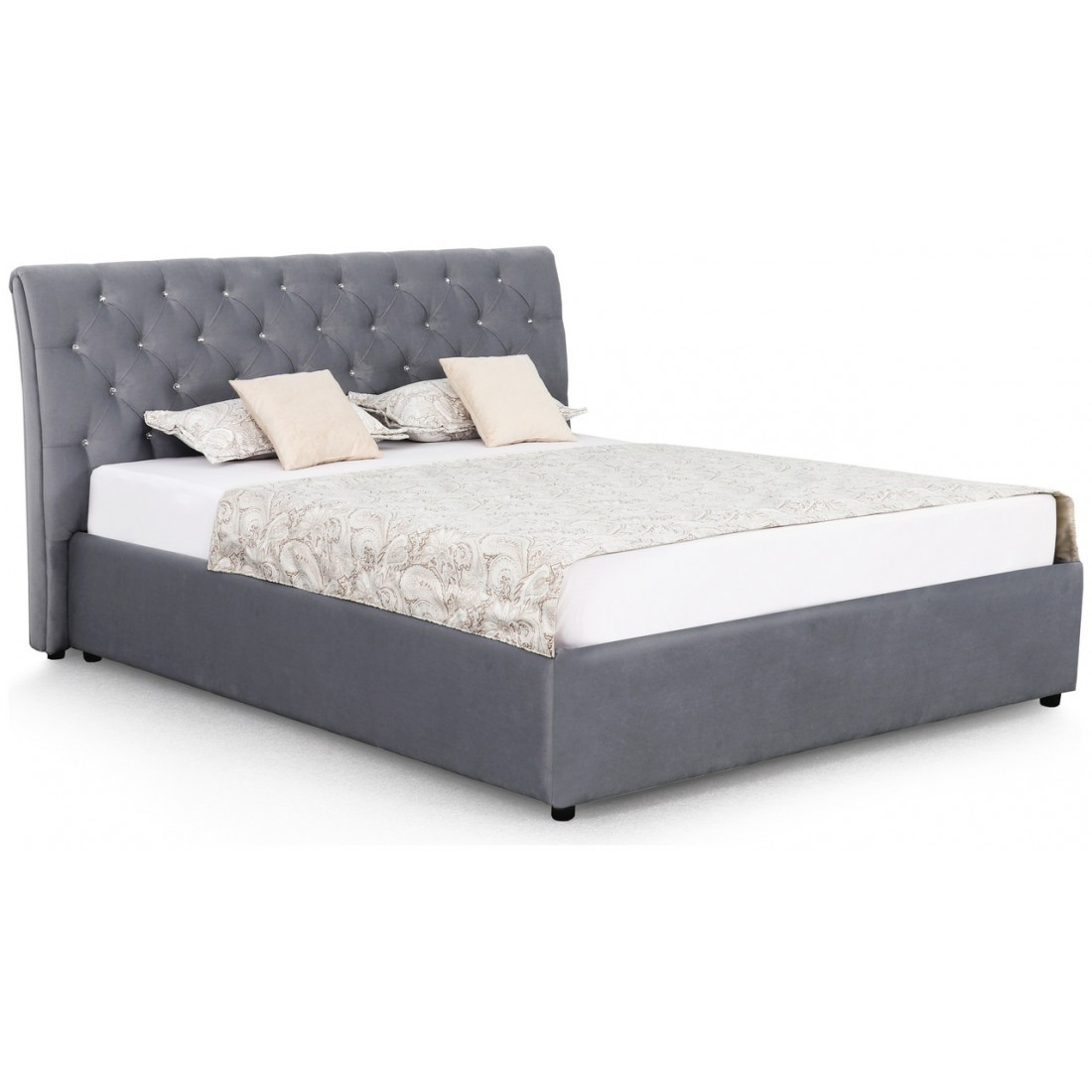 Кровать можно комплектовать ортопедическим основанием на пяти опорах или бельевым ящиком с подъемным ортопедическим основанием.