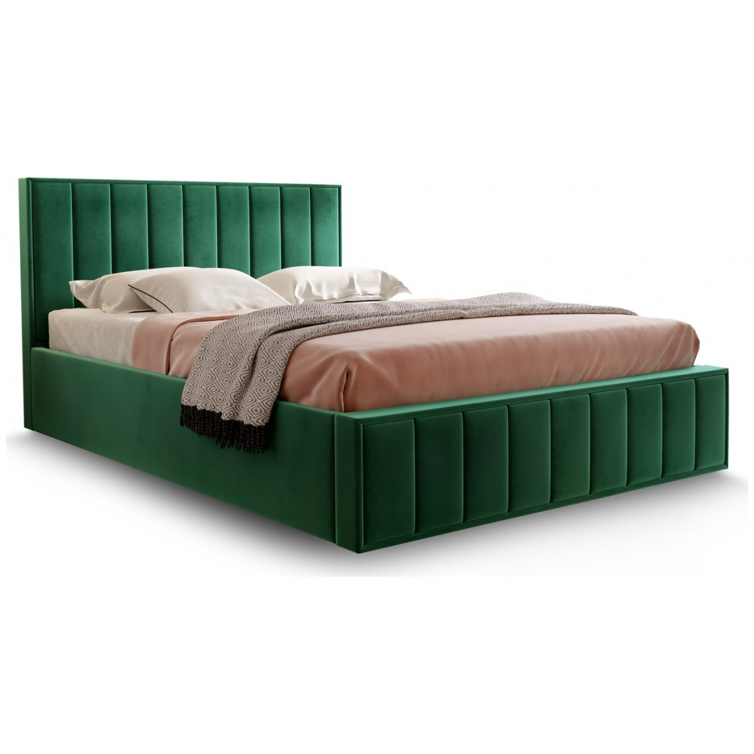 Кровать можно комплектовать ортопедическим основанием на пяти опорах или бельевым ящиком с подъемным ортопедическим основанием.