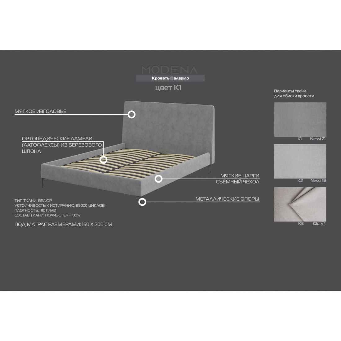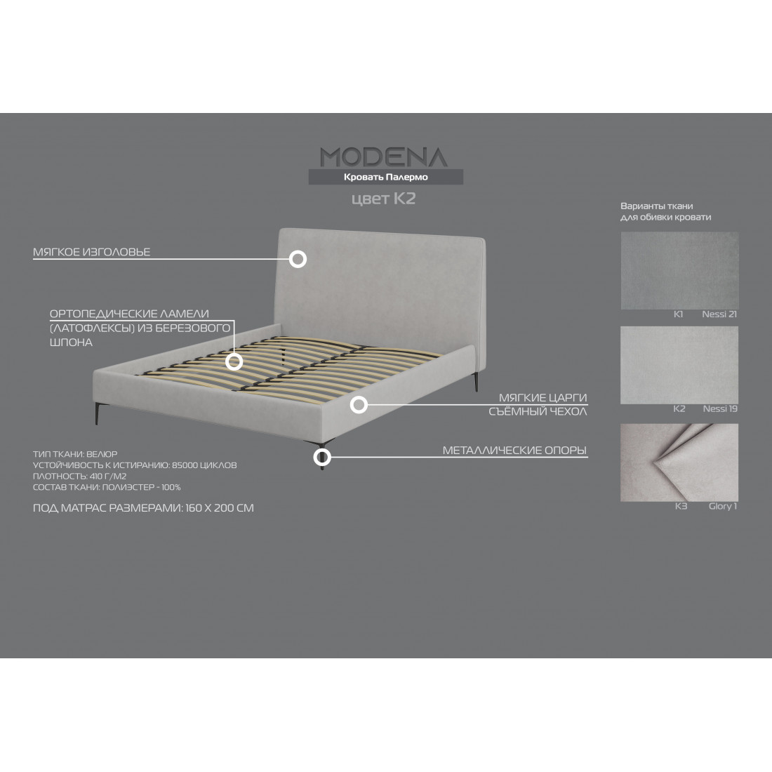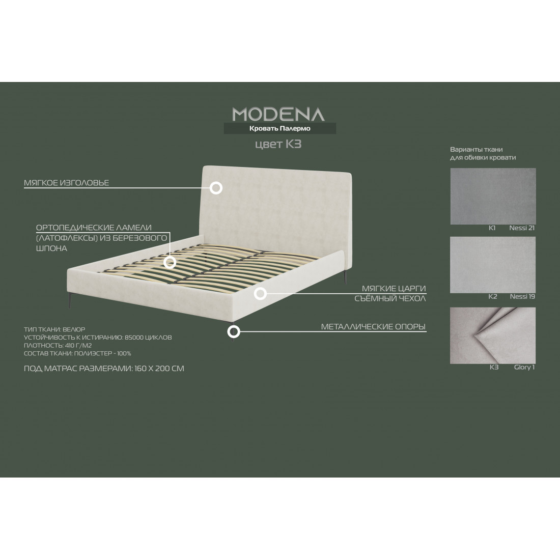 3 вида обивки: К1 nessi 21, K2 nessi 19, K3 glory 1
