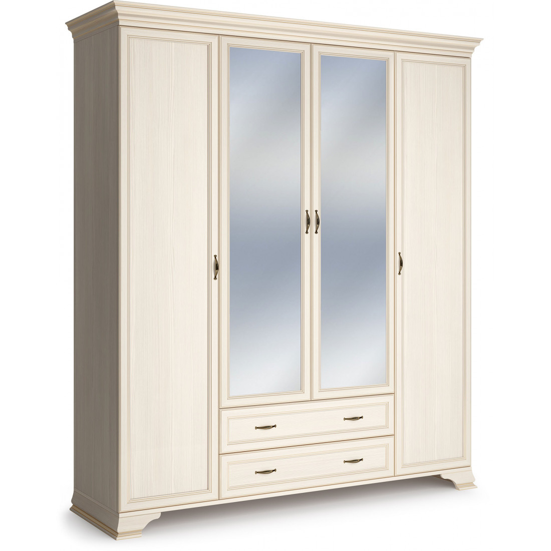 4-х дверный шкаф из коллекции для спальни «Сиена» подставляется в комплекте с боковыми фасадами, центральные двери (на выбор - зеркальные или глухие) поставляются отдельно от шкафа.