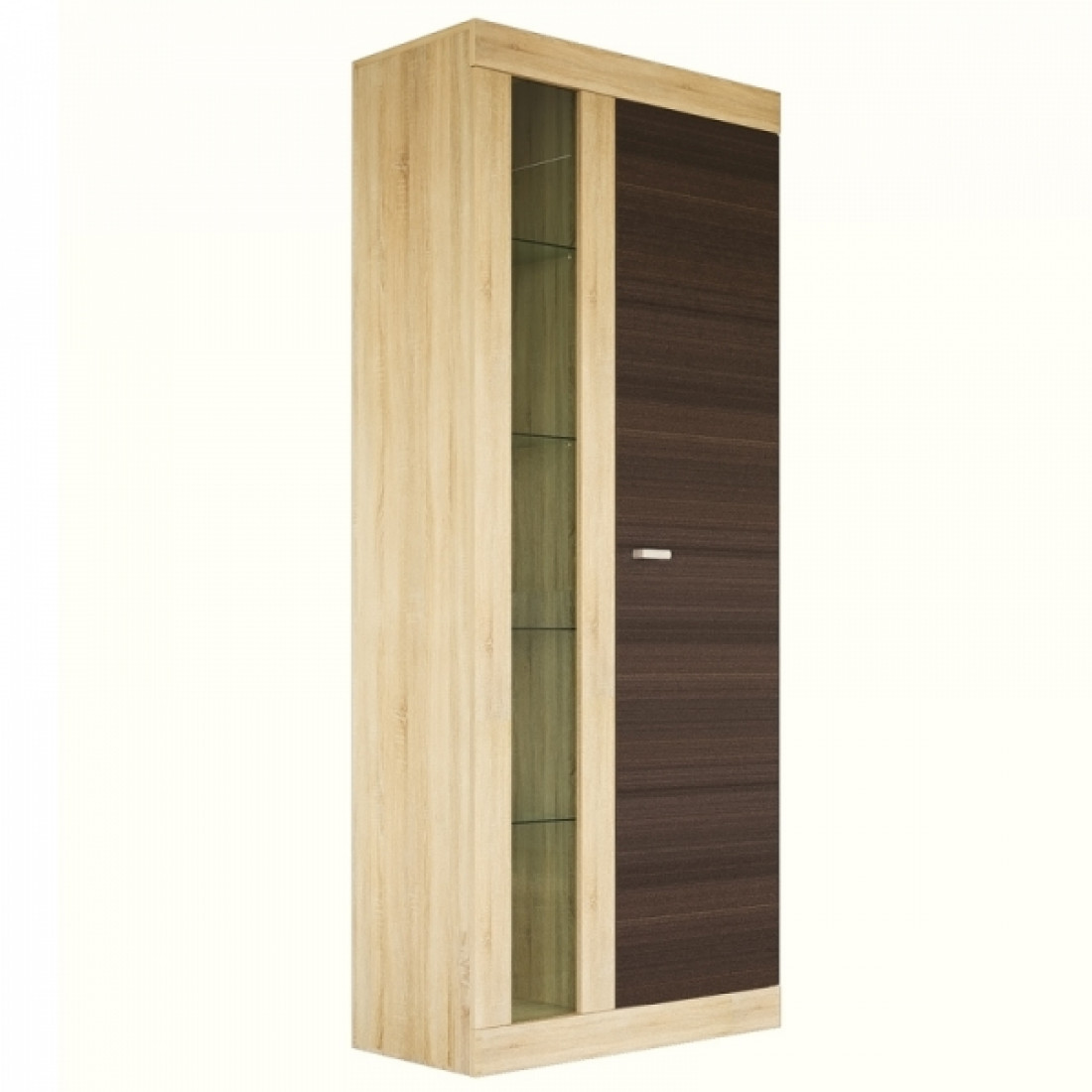 Слева у него стеклянные полки за стеклянной дверцей, а справа полочки за закрытой.