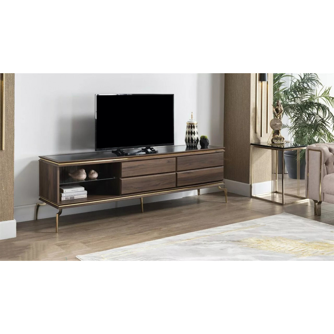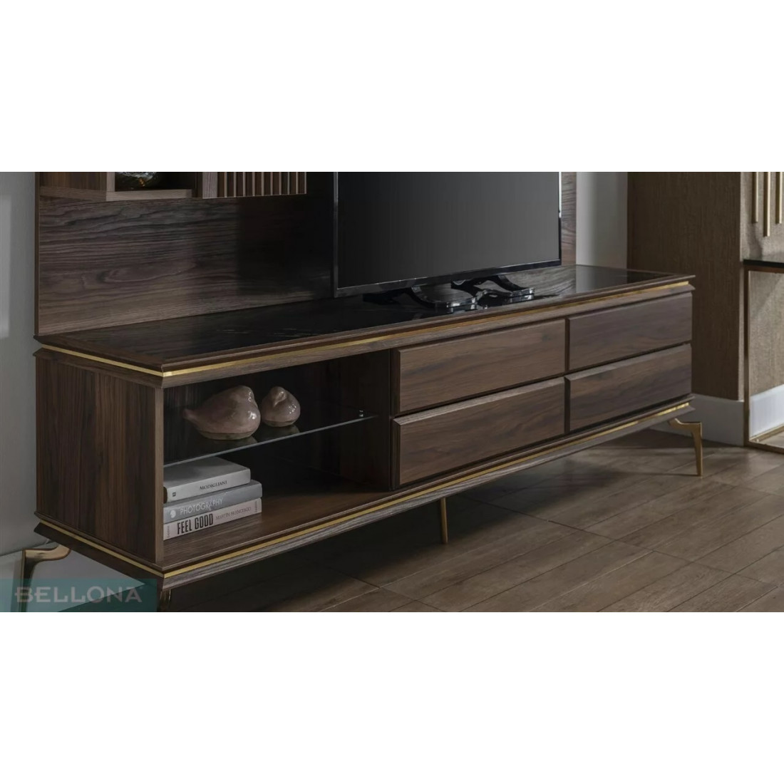 Многофункциональная тумба под TV "Монтего". Шикарная стенка турецкого производства. На нее можно поставить телевизор размером в 55 дюймов. Есть место для DVD плеера и игровой приставки. Все вещи будут на своих местах, что не может не радовать.